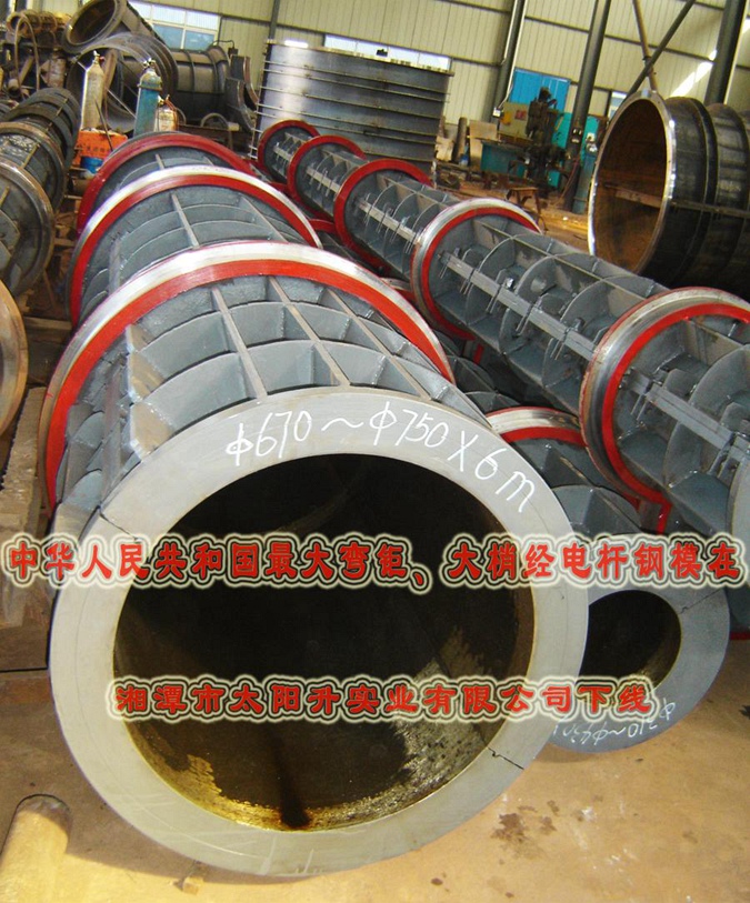 中華人民共和國最大大彎矩、大梢經(jīng)電桿鋼模在湘潭市太陽升實(shí)業(yè)有限公司下線